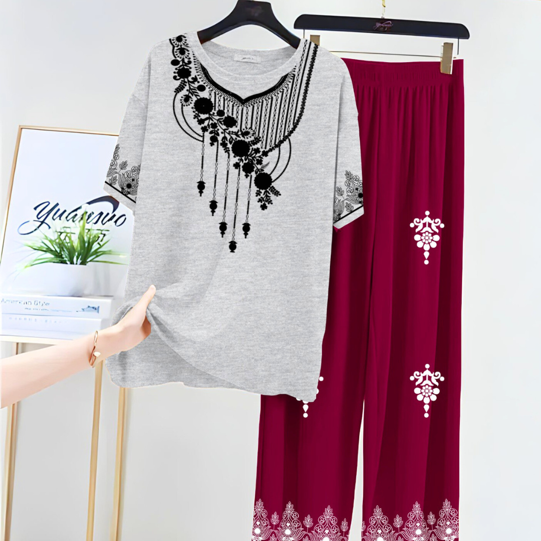 Experience the perfect balance of elegance, comfort, and modern fit, designed for women who love to relax in style. This set features a soft-touch jersey shirt with a trendy flapper trouser, making it your go-to outfit for cozy nights, lazy mornings, and weekend lounging.